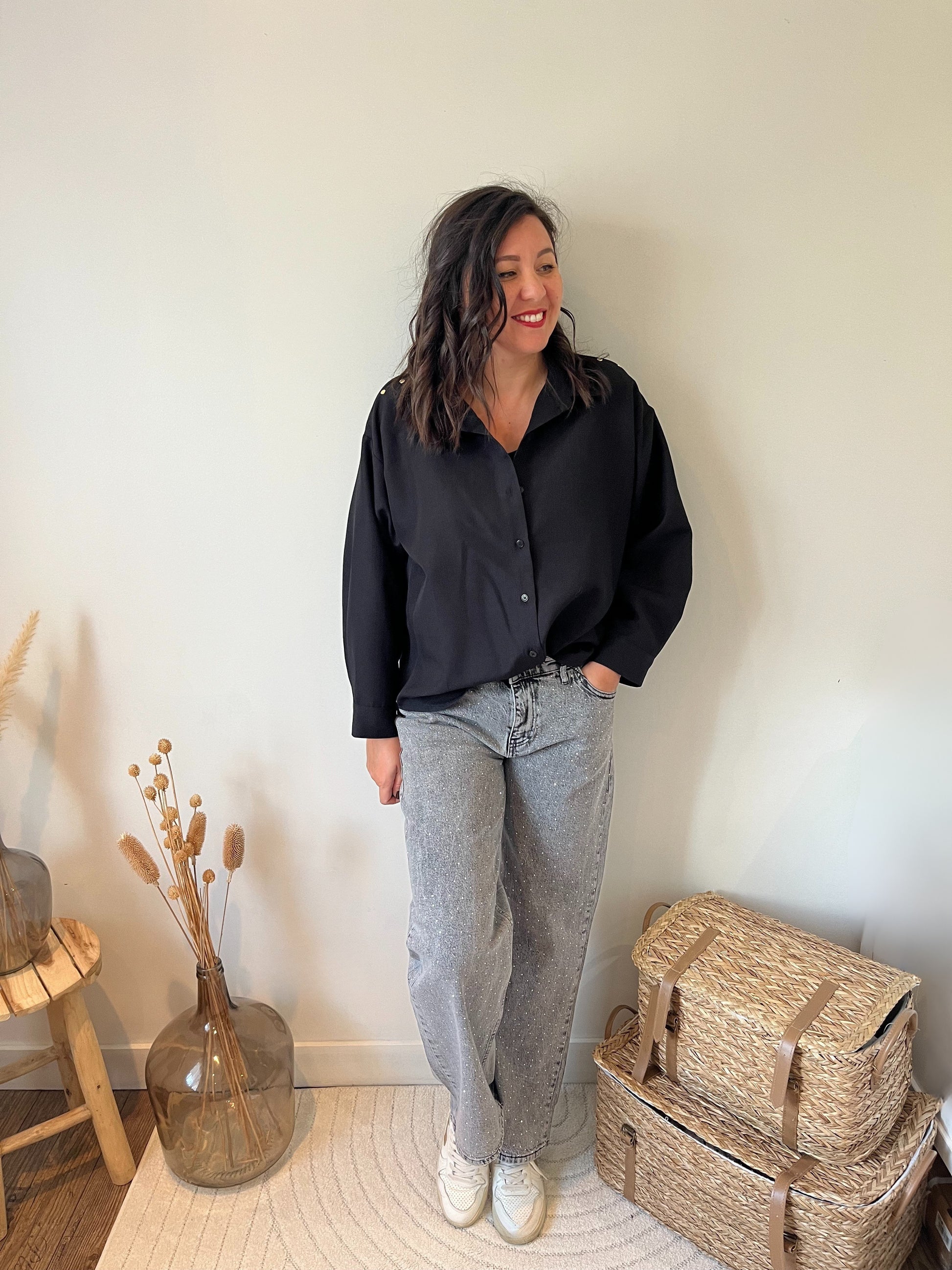 Découvrez notre chemise Alice légère et fluide très agréable à portée avec sa petite touche rock avec les clous au niveau des épaules .