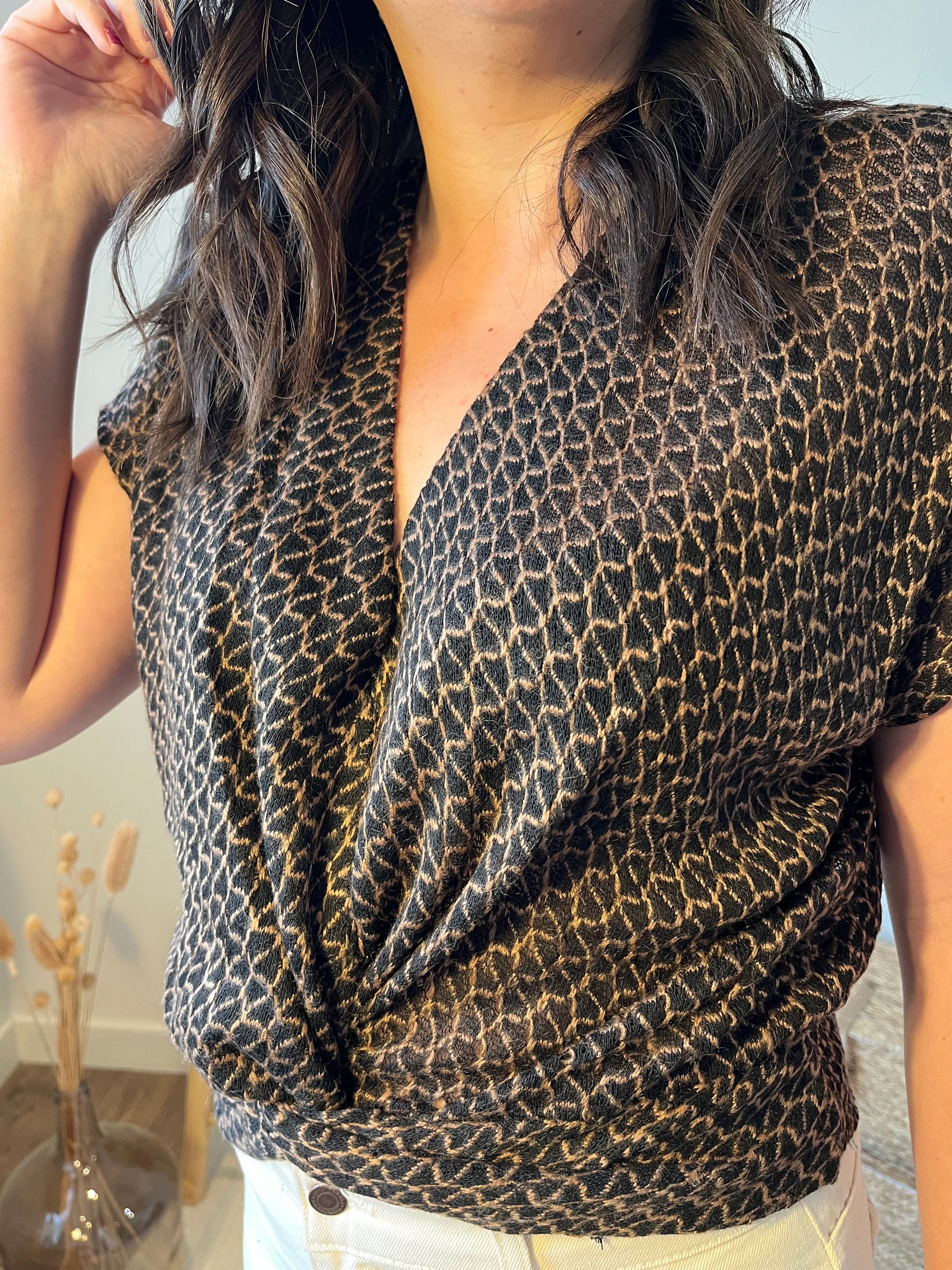 Top Blair col V avec un nœud élégant sur le devant, pensé pour mettre en valeur la silhouette grâce à sa taille élastiquée. Une pièce féminine et polyvalente, idéale pour composer des looks aussi bien décontractés que habillés.